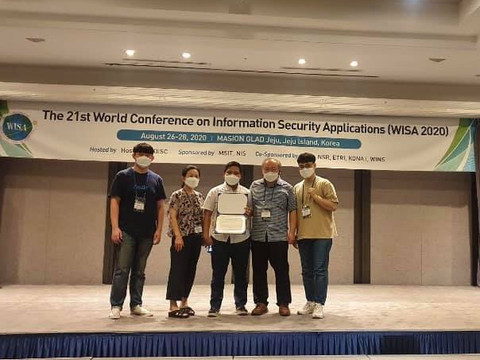 2020년 8월 25일부터 28일까지 한국정보보호학회에서 개최한 국제학술대회인 The 21st World Conference on Information Security Applications (WISA 2020)에서 모바일인터넷보안연구실 소속의 Philip Virgil Astillo, Gaurav Choudhary, 김지윤, 박훈용 학생과 유일선 교수가 Best Poster Gold Award를 수상하였습니다.